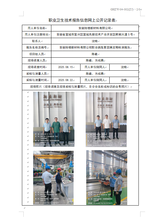 安徽翔樓新材料有限公司職業病危害因素定期檢測報告 報告編號25JC63425758Q001